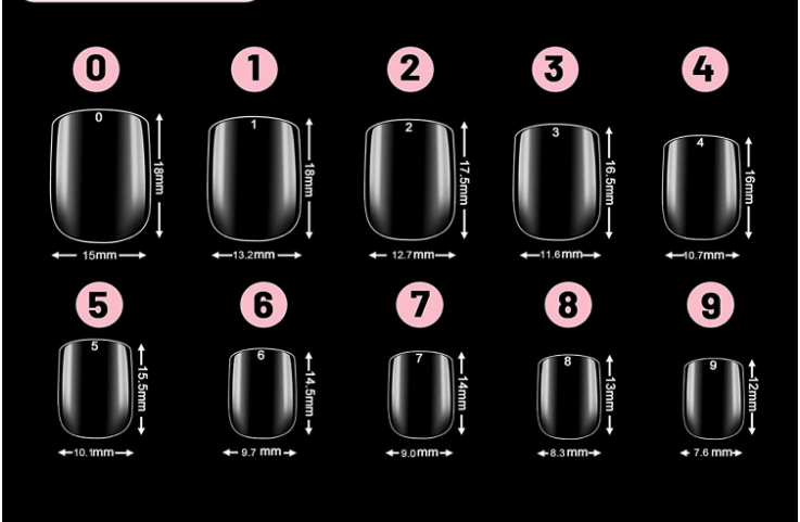 Extra Short Square shaped press-on nails with Rhinestones: Long Large 0, 4, 3, 5, 7