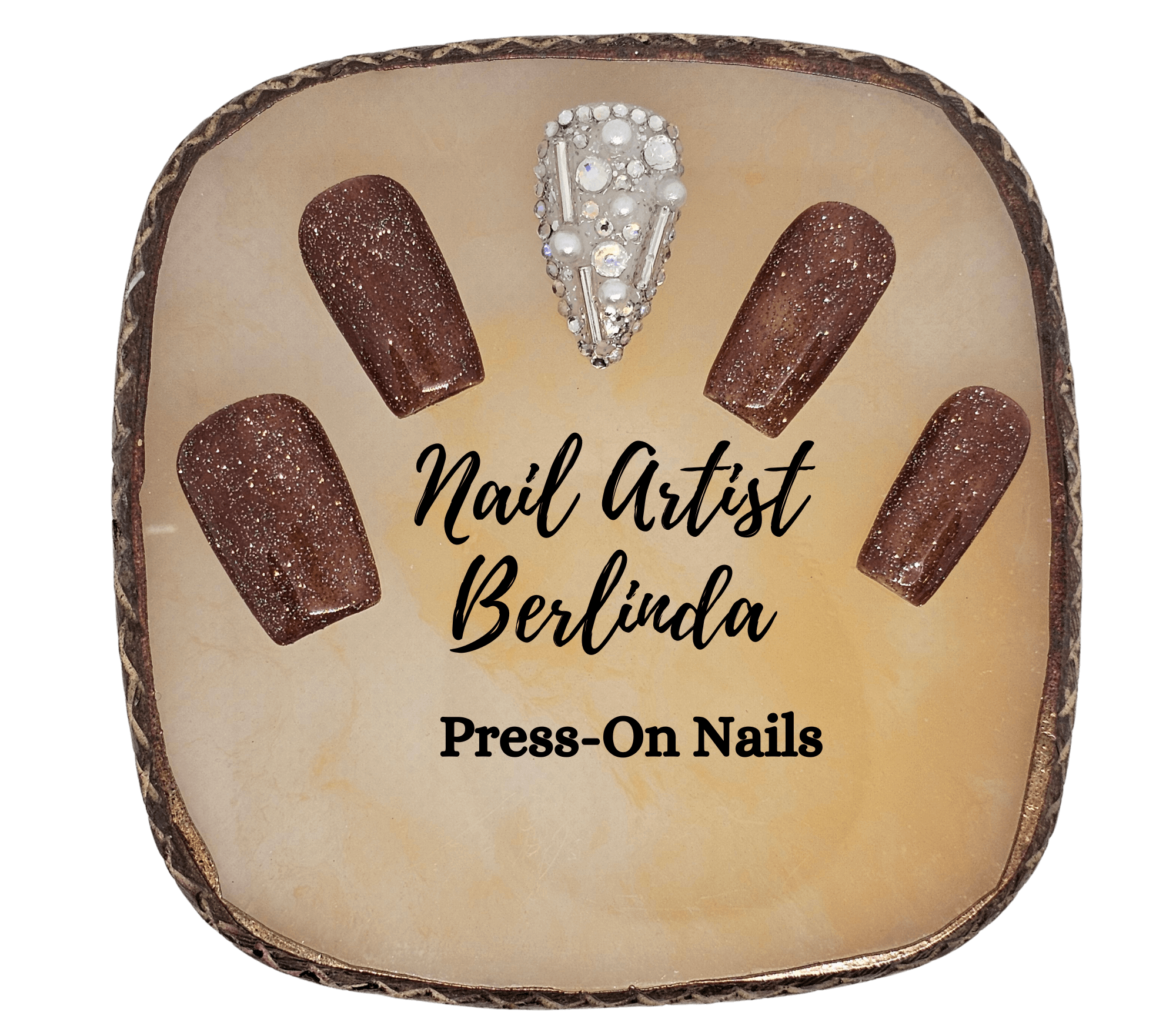 Brown Glittered Press-on Nails with Stiletto Junk Nail Bling: Small 2, 5, 4, 6, 9 Medium