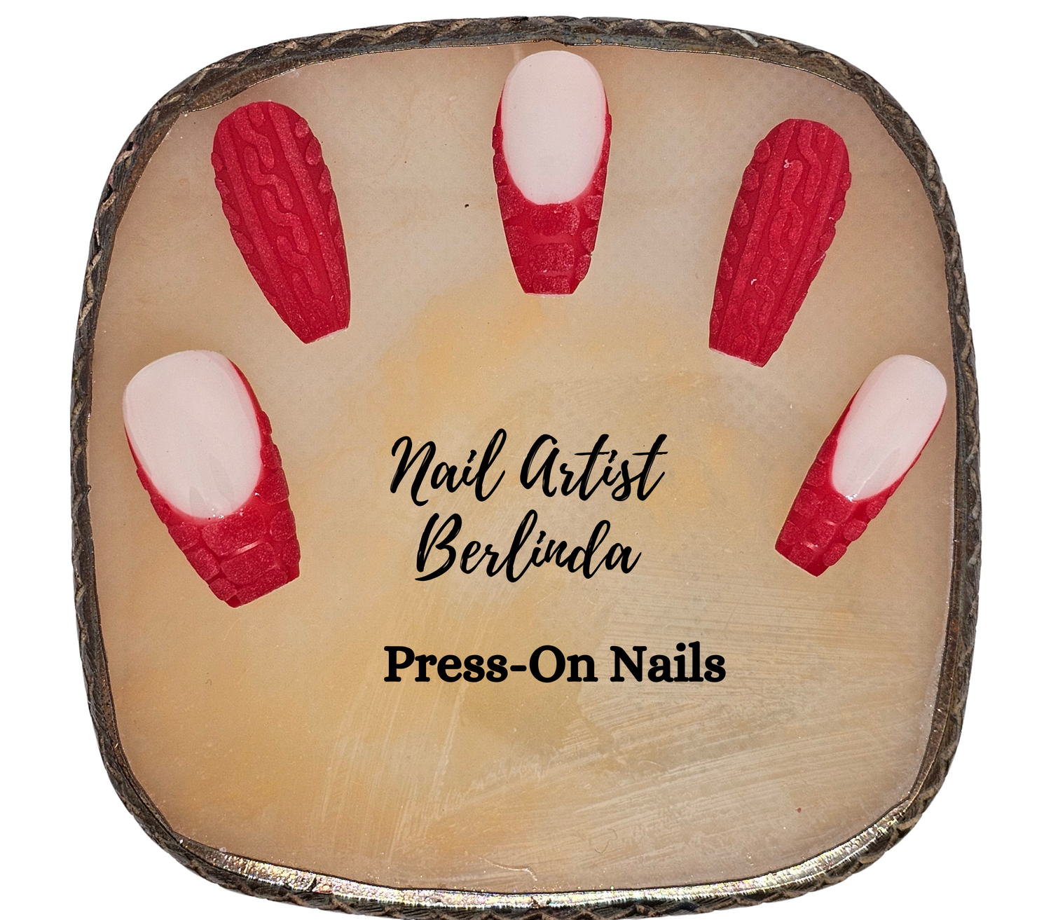 Red Sweater Print Press-On Nails: All Sizes (1 - 10) Medium