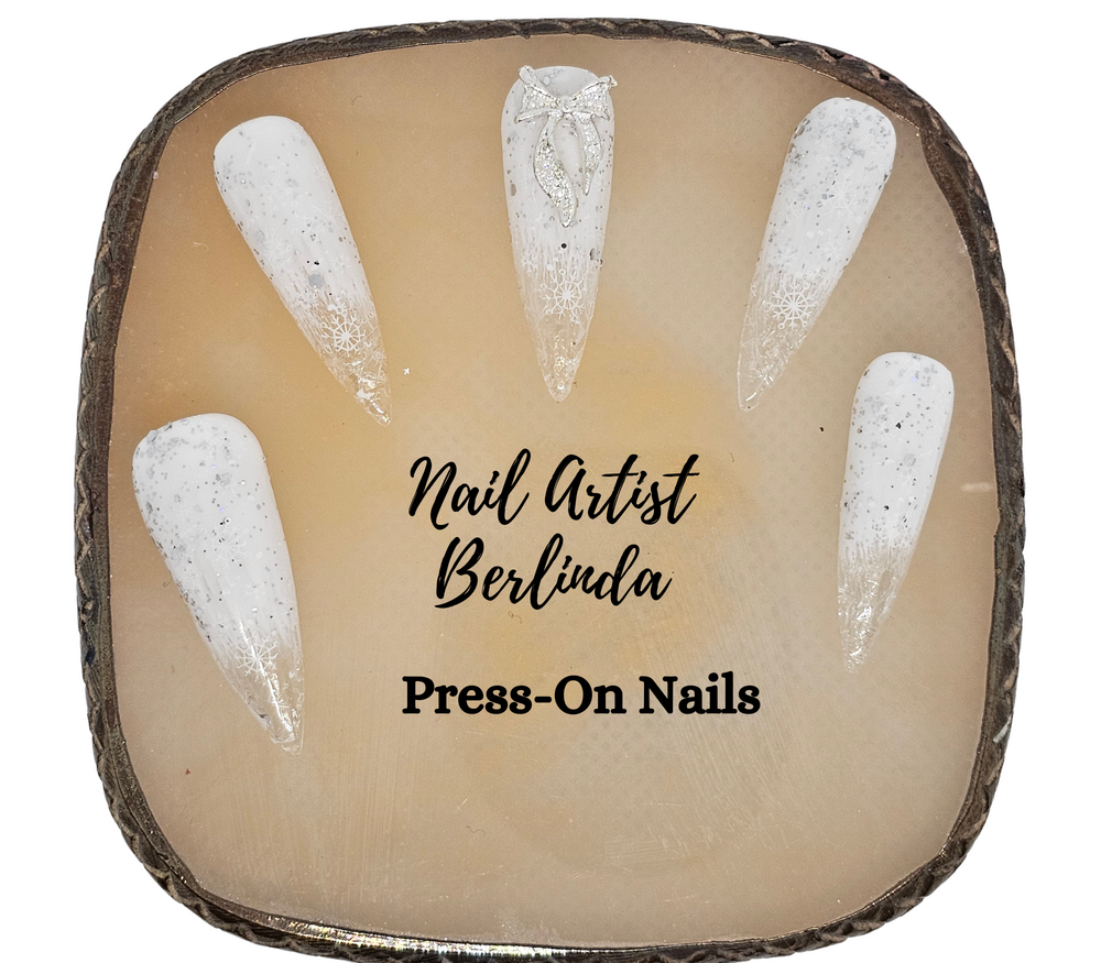 Ice and Snowflakes Inspired Press-on Nails with Glitter and Blinged Bows: All Sizes (1 - 10) Medium