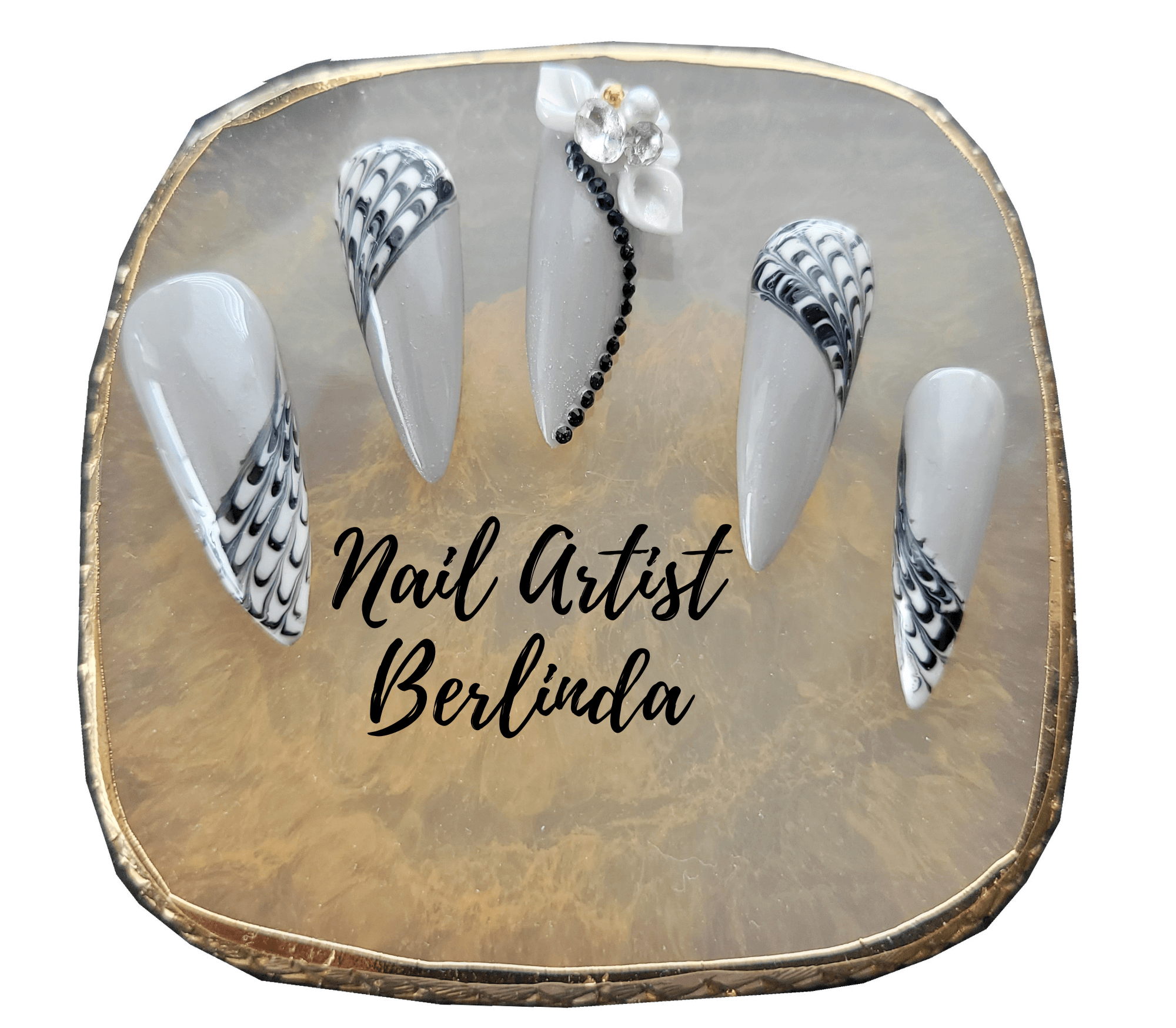 Press-on Stiletto Marbleized Nails with 3D Flowers: Large 0, 4, 3, 5, 7 Medium