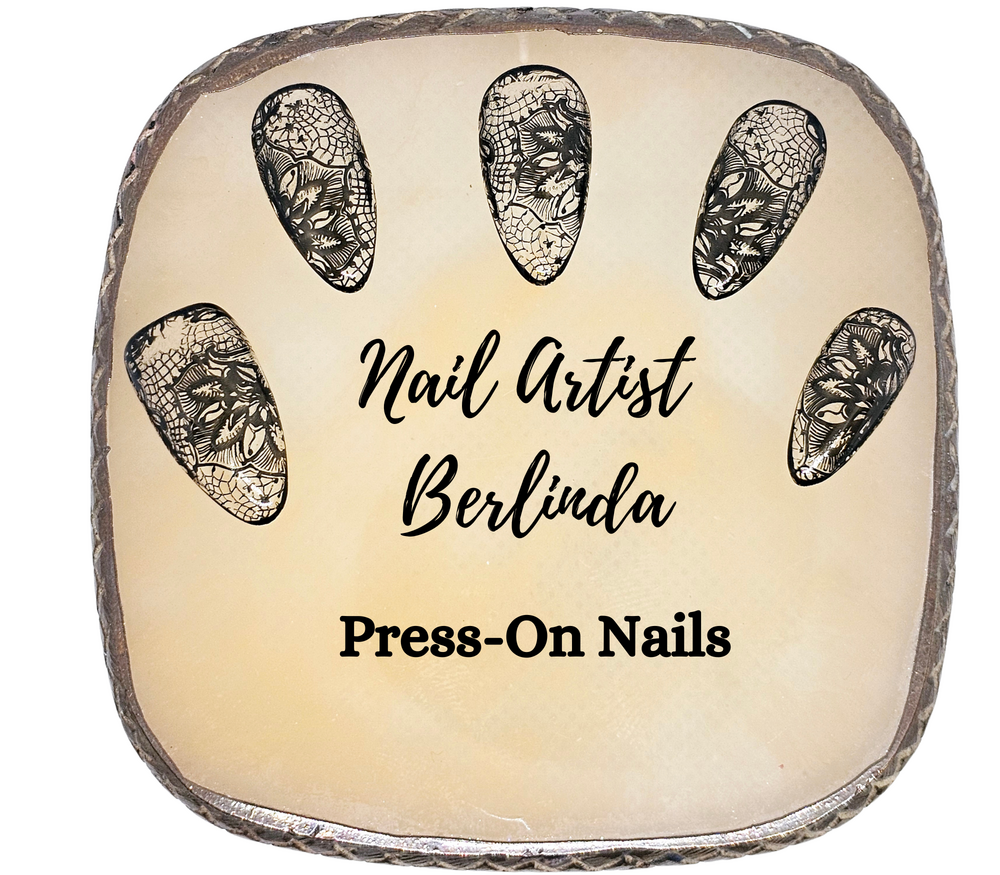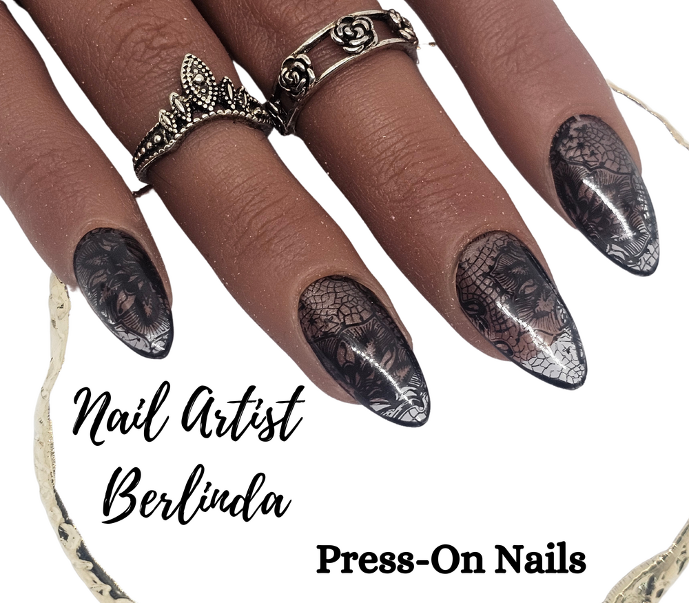 Clear and Black Lace, Almond Shaped Press-On Nails, French Manicure Inspired: All Sizes (1 - 10) Medium