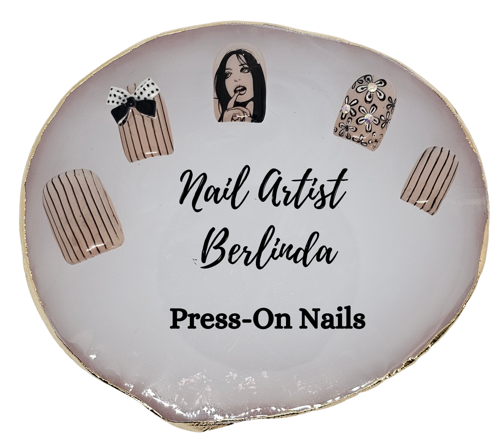 Women Silhouette Press-on Nails with Rhinestones, 3D Bows, Flowers and Rhinestones: All Sizes (1 - 10) Medium