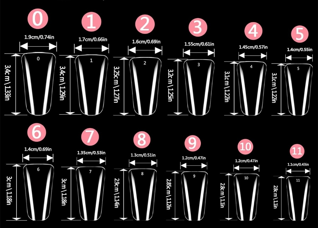 Custom sizes - please specify, or order a Nail sizing kit for the best fit.