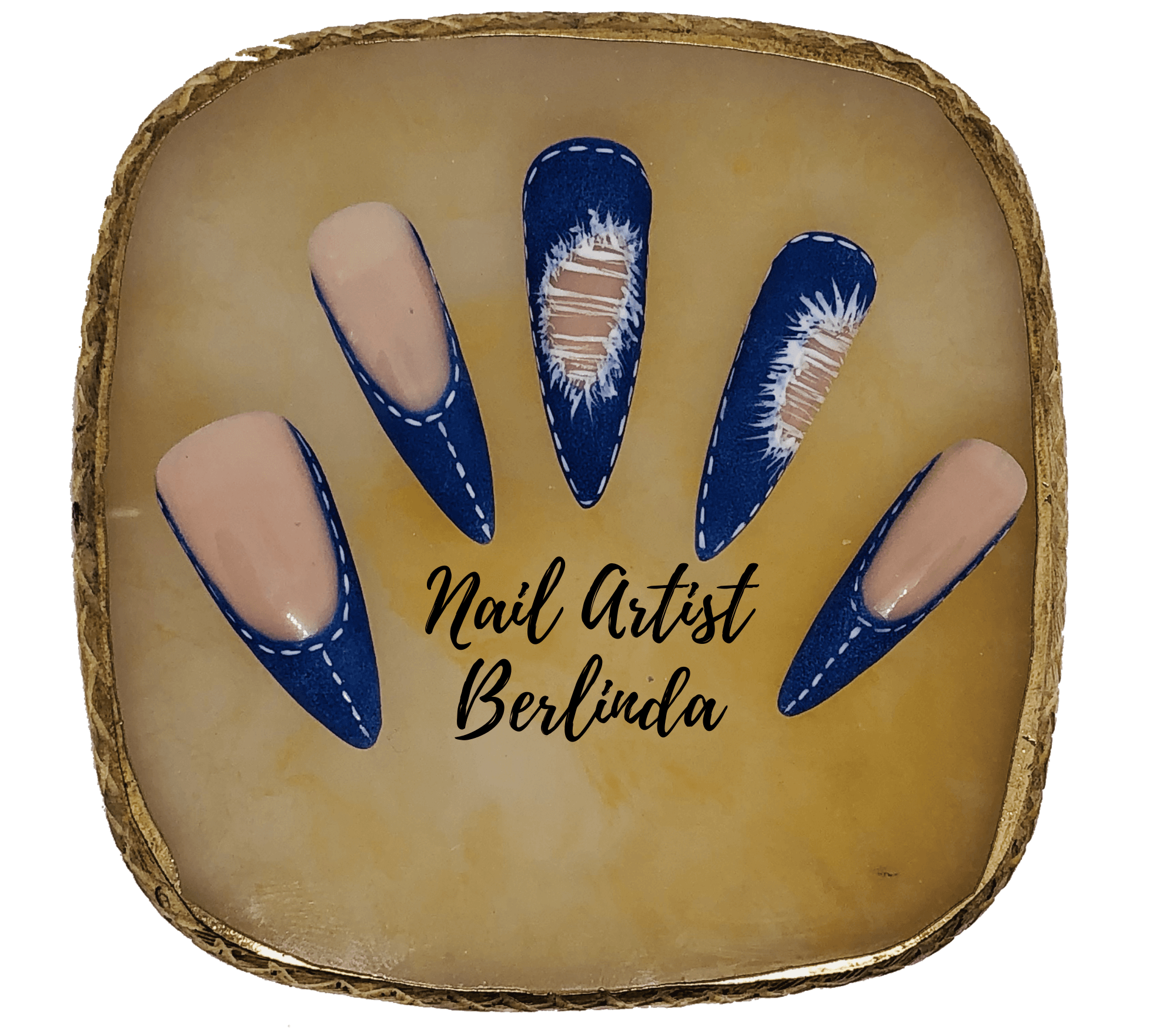 Press-on Stiletto Nails, Dark Blue with Ripped Denim: Medium 1, 5, 4, 6, 8 Medium