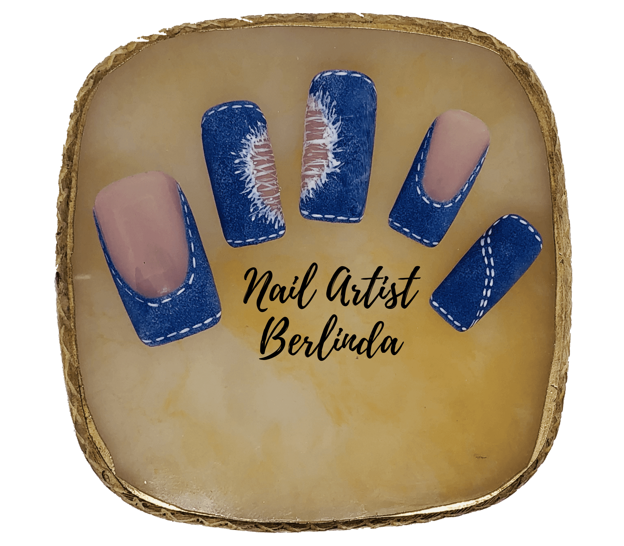 Press-on Square Nails with a Ripped Blue Denim look: Small 2, 5, 4, 6, 9 Medium